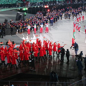 Под звуки разных мелодий, в том числе с колоритом национального корейского эпоса, торжественным маршем прошли делегации из 92 стран мира, что является рекордом всех предыдущих зимних Олимпиад.