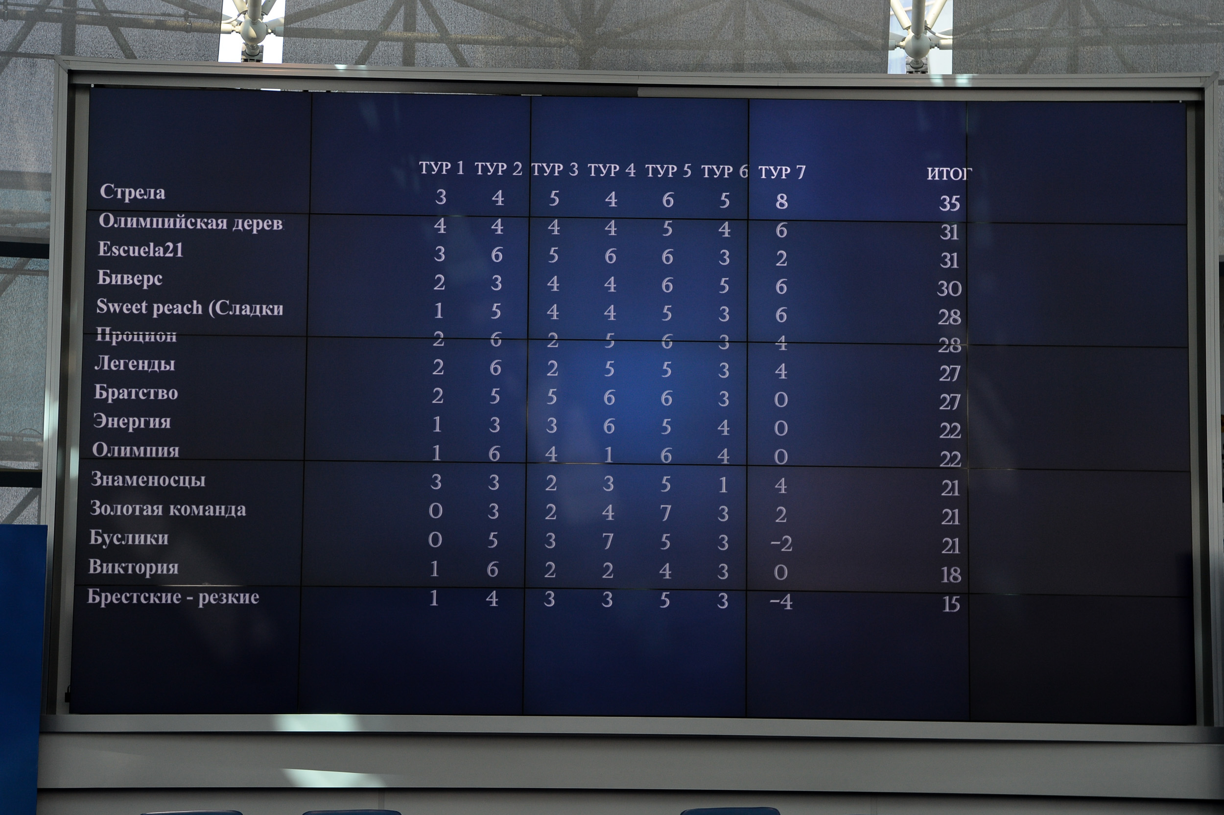 По итогам семи туров, практически на финишной ленте, победу одержали ребята из команды «Стрела» Минского государственного городского училища олимпийского резерва вместе с конькобежцем, победителем этапа Кубка мира в масс-старте Виталием Михайловым. Минчане в седьмом туре смогли набрать 8 очков за ответы на вопросы, что и позволило им выиграть. Второе место заняли учащиеся Гомельского государственного училища олимпийского резерва – «Олимпийская деревня» вместе с бронзовым призером Игр по велоспорту Натальей Цилинской, а третье – у столичной команды Escuela21 (СШ № 21 им. Гастелло) вместе с серебряным призером II Европейских игр Мариной Жарской.